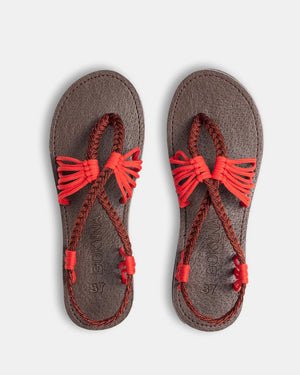 The sweet and delicate red brown jazzes up the unique and intricate woven straps design of this pair of comfy sandals. You can pair the super comfy REd Brown Bokynas with mint green or light blue outfits.