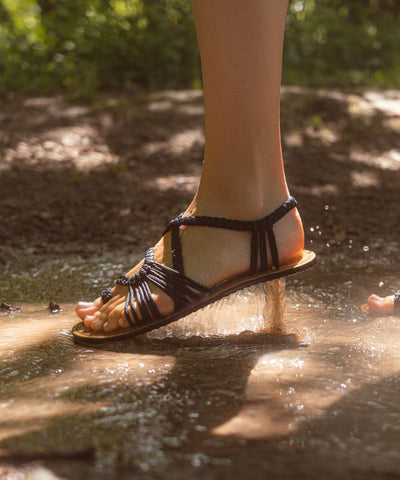 The Barefoot sandals are designed to be thin, giving you the feeling of being almost barefoot while still providing the comfort and durability of a regular sandal. This unique zero-drop, flat design feature of the soles allows for a more natural walking experience.