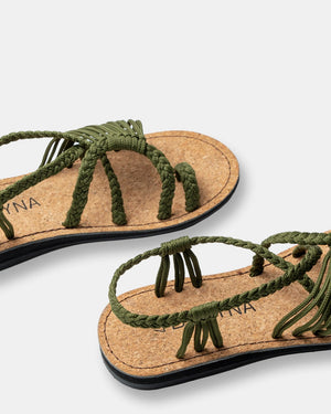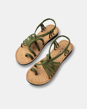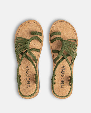 Nothing is more beautiful than the Mediterranean in the warm season. Embrace the beauty of living the simple life out in the sun with our Soulmate sandals in a color to match the mood, eye-catching olive with a dark cork sole.